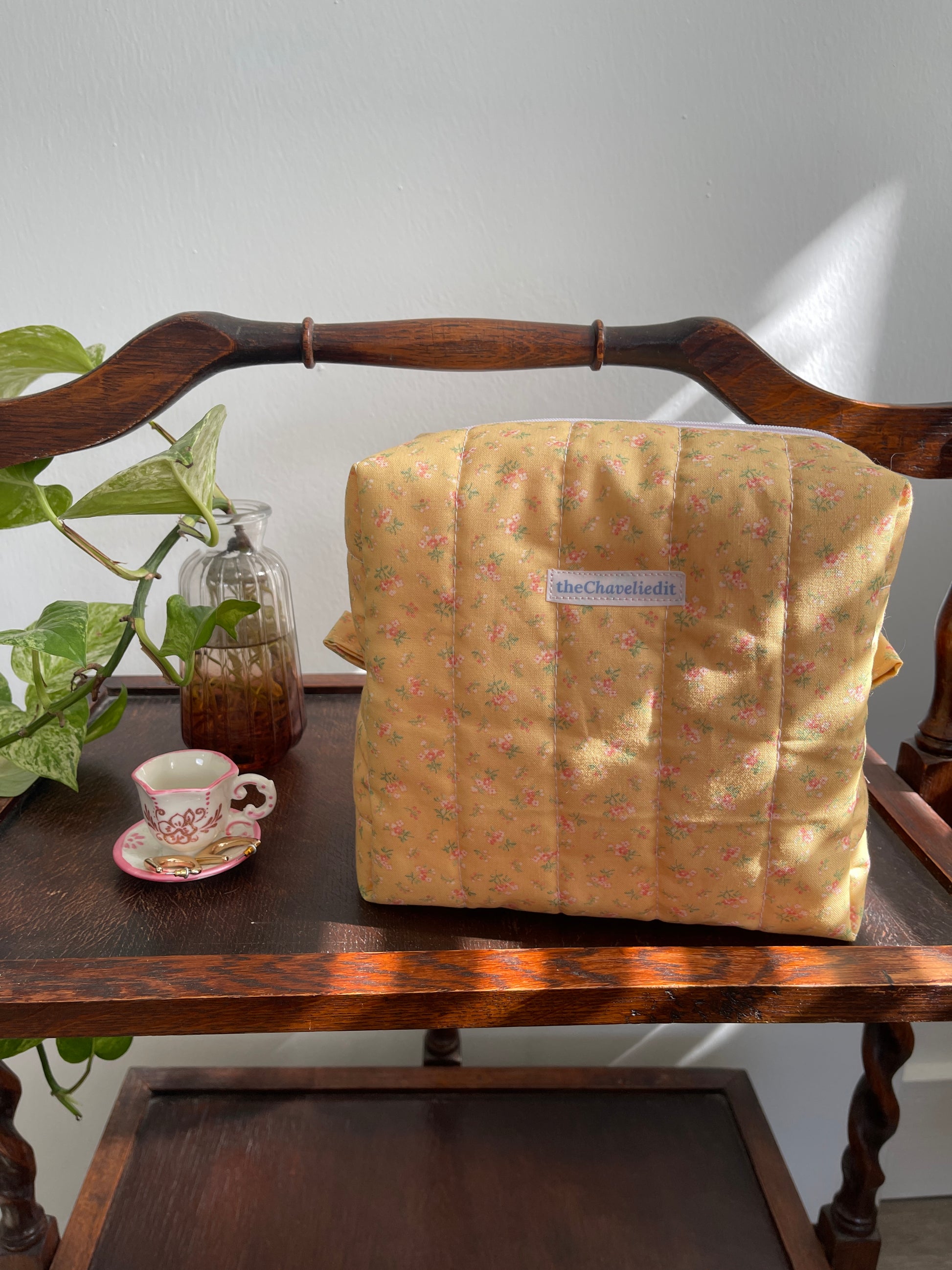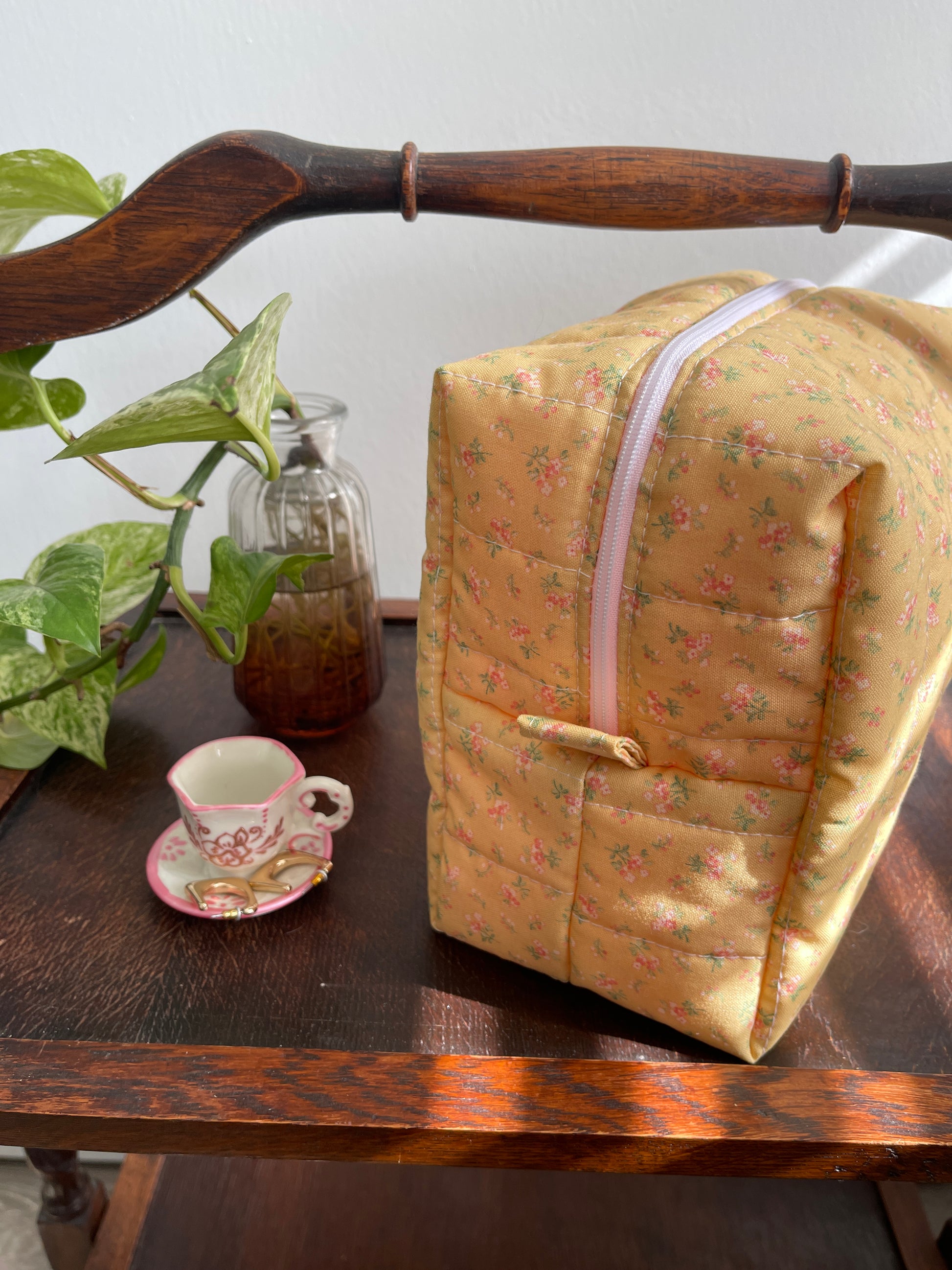 Handmade & Quilted: Crafted from 100% cotton fabric with a soft, structured feel. -Spacious & Functional: A roomy interior designed to fit all your everyday essentials. -High-Quality Details: Smooth, durable zipper with pull tab for easy open & close. -Versatile Use: Perfect for beauty products, toiletries, or even as a purse organizer. -Great for Gifting: A must-have for bridal parties, birthdays, and thoughtful gifts. Please Note: Each bag is handmade with care, which means slight variations add to its unique charm.