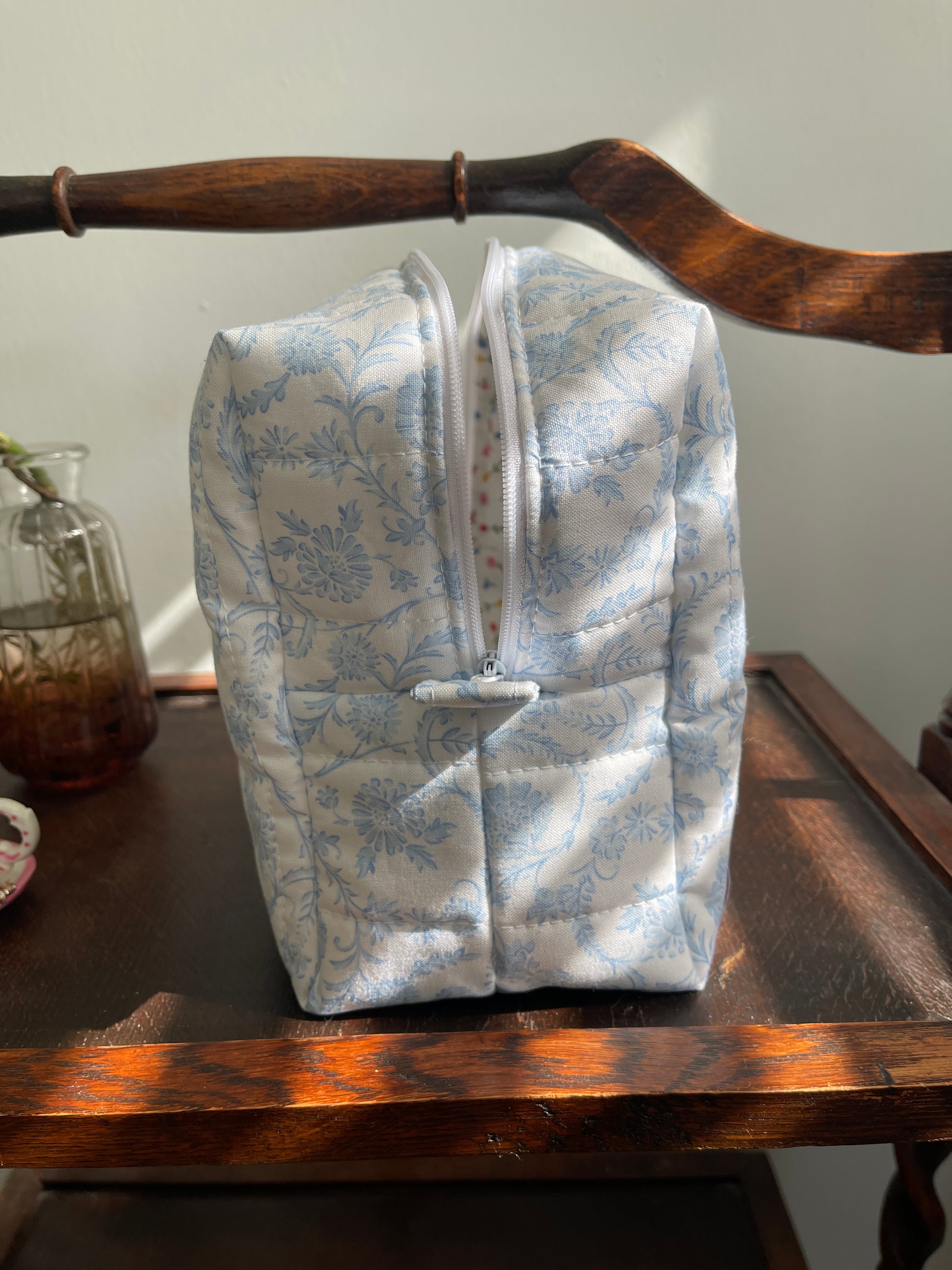 Handmade & Quilted: Crafted from 100% cotton fabric with a soft, structured feel. -Spacious & Functional: A roomy interior designed to fit all your everyday essentials. -High-Quality Details: Smooth, durable zipper with pull tab for easy open & close. -Versatile Use: Perfect for beauty products, toiletries, or even as a purse organizer. -Great for Gifting: A must-have for bridal parties, birthdays, and thoughtful gifts. Please Note: Each bag is handmade with care, which means slight variations add to its unique charm.